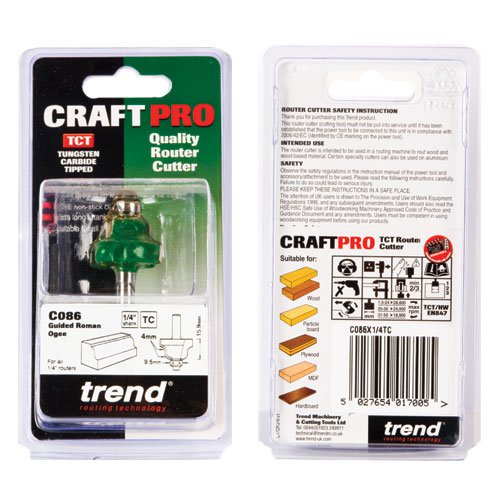 Trend C086x1/4TC CraftPro Guided Roman Ogee Router Cutter 4mm Radius x 1/4 Shank