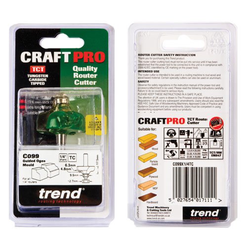 Trend C099x1/4TC CraftPro Guided Ogee Mould Router Cutter 6.3/4.8mm Radius x 1/4 Shank