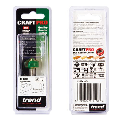 Trend C108X1/4TC CraftPro Ogee Panel Router Cutter 3.2mm Radius x 1/4 Shank