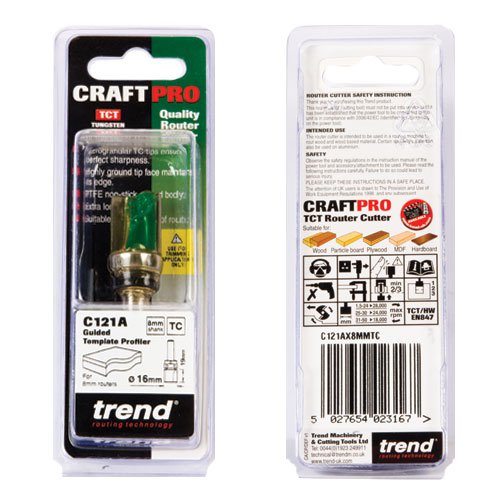 Trend C121AX8MMTC CraftPro Guided Template Profiler 16mm Dia x 19mm Cut x 8mm Shank