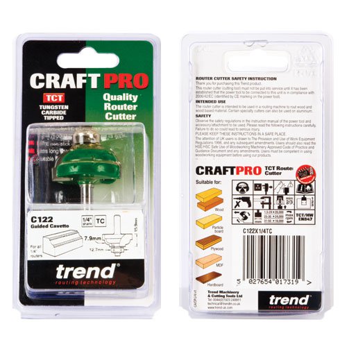 Trend C122X1/4TC CraftPro Guided Cavetto Router Cutter - 7.9mm Radius