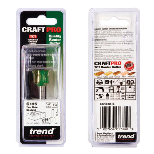 Trend C125X1/4TC CraftPro Two Flute Straight Router Cutter 15.9mm Dia x 12.7mm Cut x 1/4 Shank