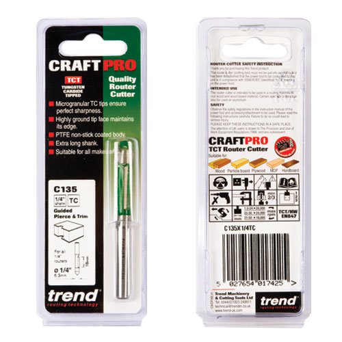 Trend C135X1/4TC CraftPro Pierce and Trim Router Cutter 6.3mm Dia x 18mm Cut x 1/4 Shank