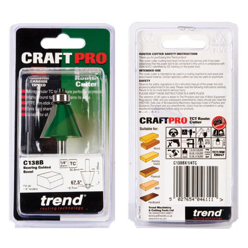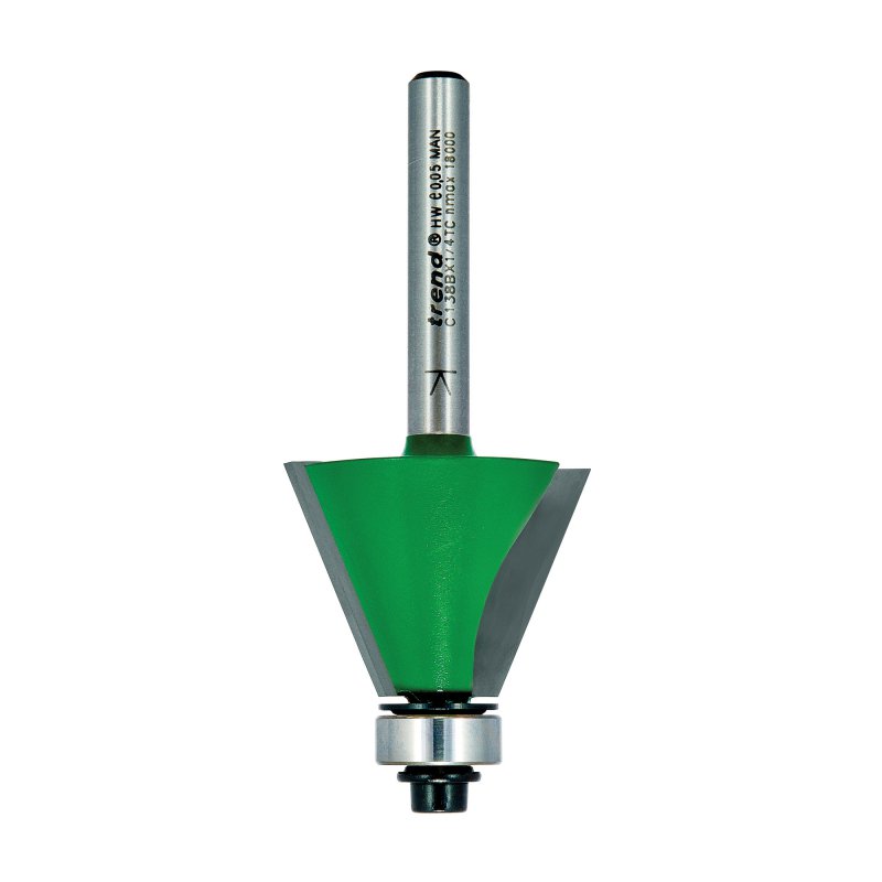 Trend C138BX1/4TC CraftPro Guided Bevel Router Cutter 67.5 Deg x 22mm Cut x 1/4 Shank