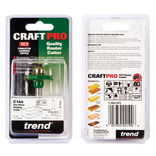 Trend C144X1/4TC CraftPro Guided Slot Router Cutter 4.7mm Cut x 31.8mm Dia x 1/4 Shank