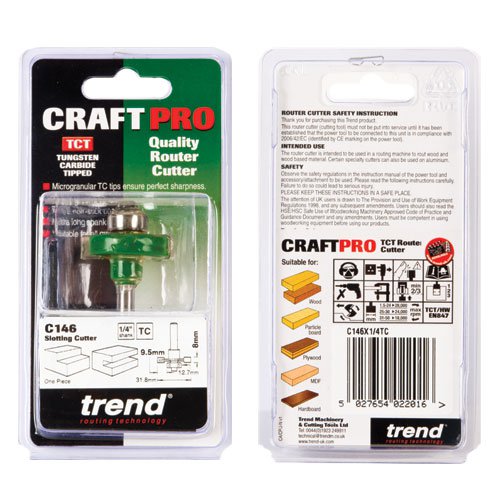 Trend C146X1/4TC CraftPro Guided Slot Router Cutter 8mm Cut x 31.8mm Dia x 1/4 Shank