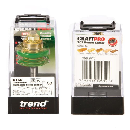Trend C156X1/4TC CraftPro Guided Combination Flat Classic Profile Scriber 3.5mm Rad x 1/4 Shank