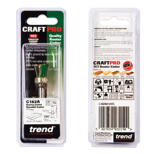 Trend C162AX1/4TC CraftPro Guided Dovetail Router Cutter - 15mm Dia x 104 Degrees