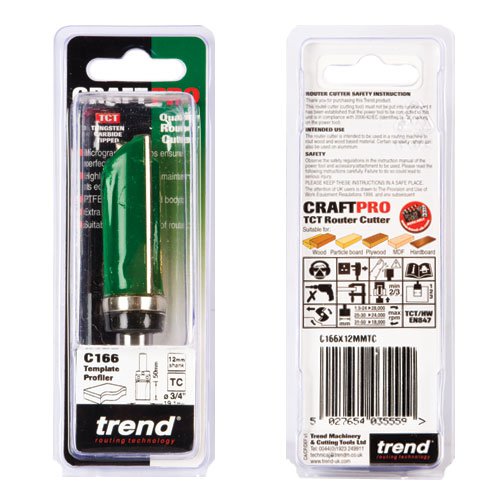 Trend C167X1/4TC CraftPro Guided Trimmer Router Cutter 6.35mm Dia x 12.7mm Cut x 1/4 Shank
