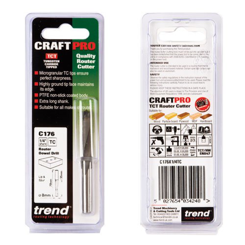 - Lip and spur dowel drills for use with the Trend Craft Dovetail Jig dowelling template.