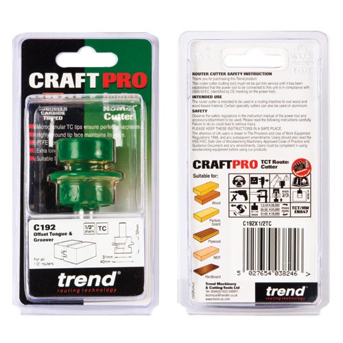 Trend C192X1/2TC CraftPro Offset Tongue and Groover Router Cutter 13mm - 25mm Timber Thickness