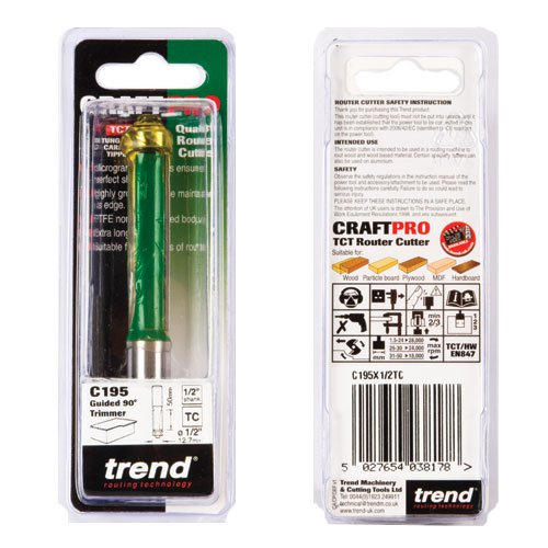 Trend C195X1/2TC CraftPro Guided Trimmer Router Cutter 12.7mm Dia x 50mm Cut x 1/2 Shank