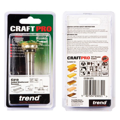 Trend C213X1/2TC CraftPro Guided Weatherseal Groover Router Cutter 3mm Cut x 36mm Dia x 1/2 Shank