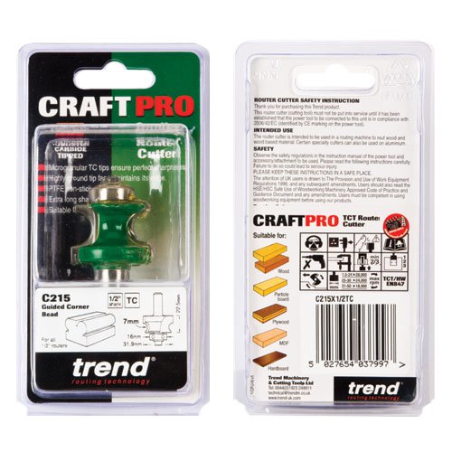 Trend C215X1/2TC CraftPro Guided Corner Bead Router Cutter - 7mm Radius