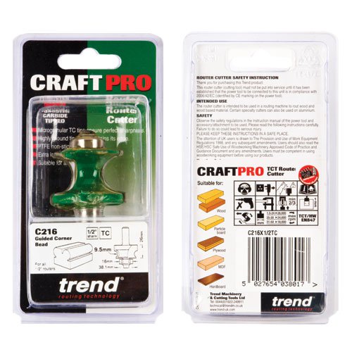 Trend C216X1/2TC CraftPro Guided Corner Bead Router Cutter - 9.5mm Radius