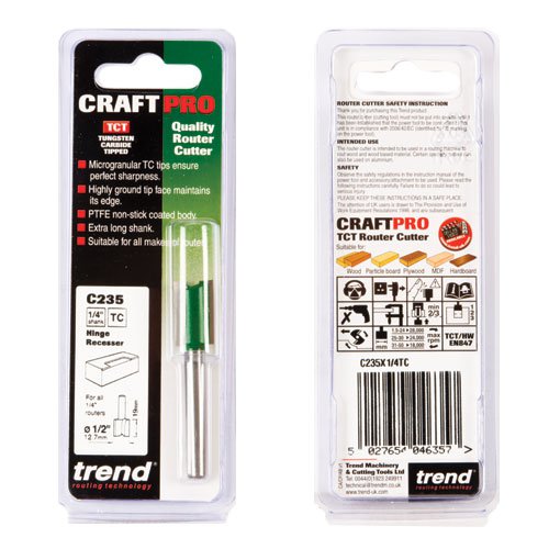 Trend C235X1/4TC CraftPro Hinge Recess Router Cutter 12.7mm Dia x 19mm Cut x 1/4 Shank