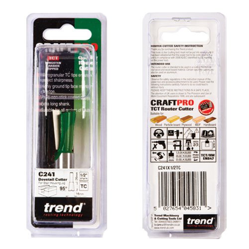 Trend C241X1/2TC Stair Housing Dovetail Router Cutter 95 Degrees x 16mm Dia x 26mm Cut