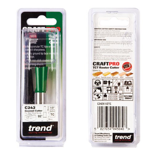Trend C242X1/2TC Stair Housing Dovetail Router Cutter 95 Degrees x 19mm Dia x 26mm Cut