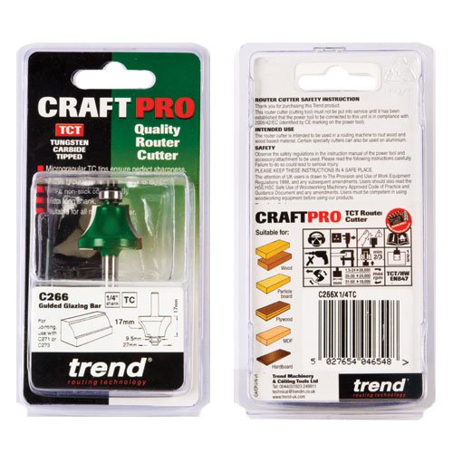Trend C266X1/4TC CraftPro Guided Glazing Bar Router Cutter (Profile) 17mm Radius x 1/4 Shank
