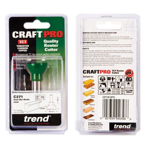 Trend C271X1/2TC CraftPro Sash Bar Ovolo Joint Router Cutter 17mm Radius (Scribe)