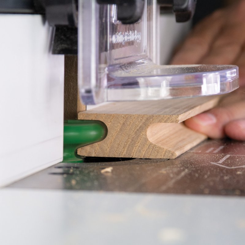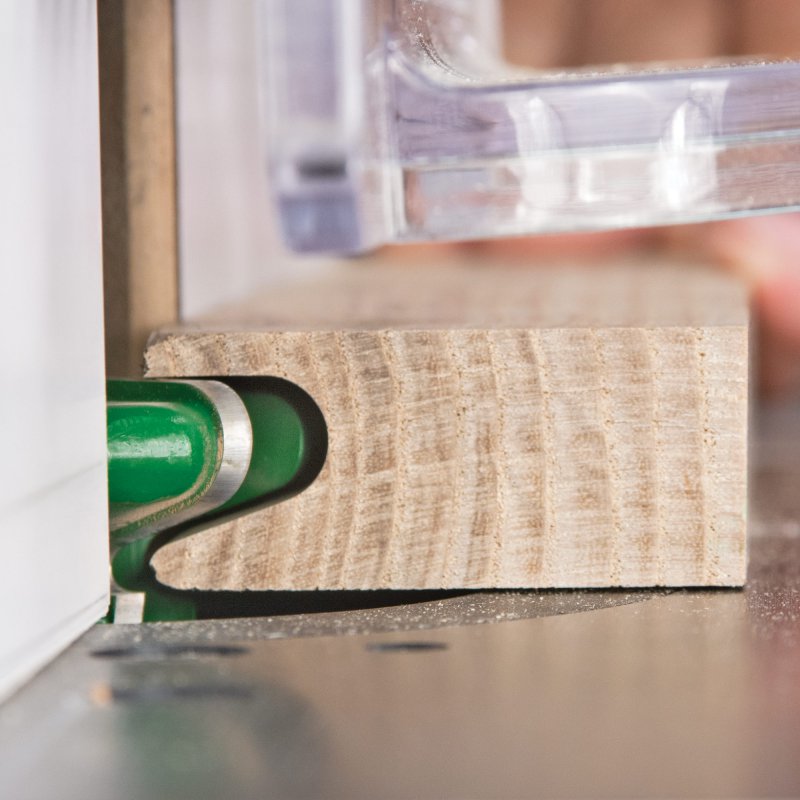 - An initial cut with a straight cutter is required to produce the drawer pull profile.