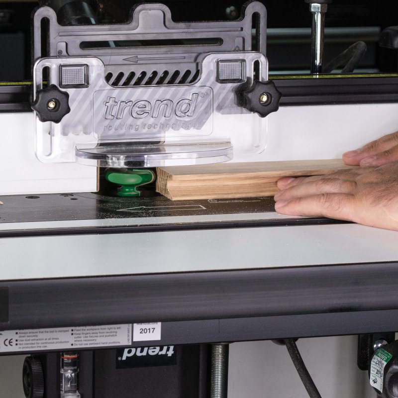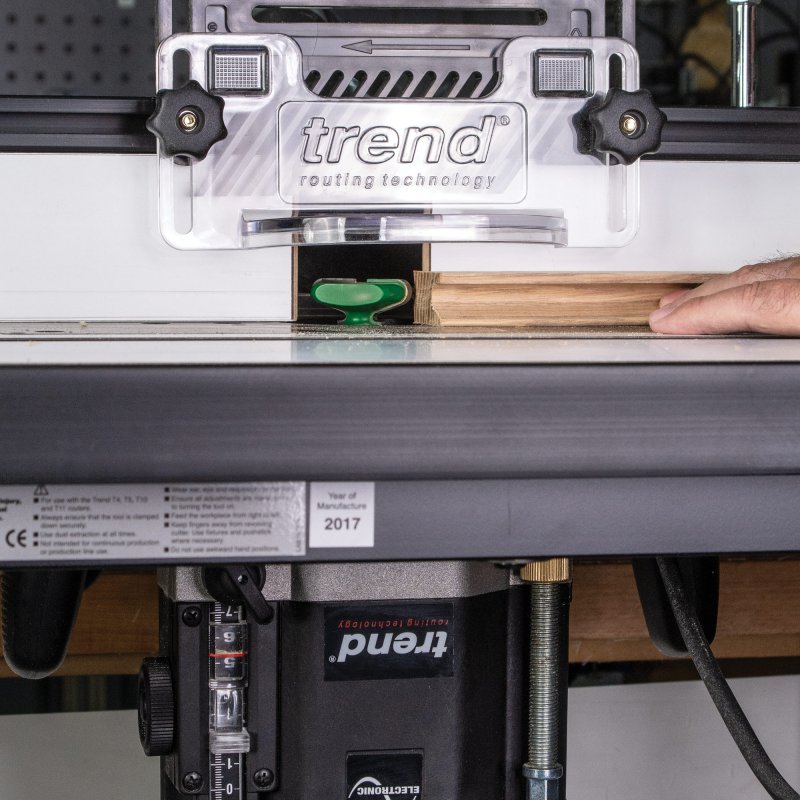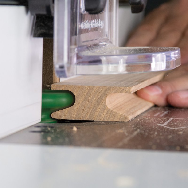 - An initial cut with a straight cutter is required to produce the drawer pull profile.