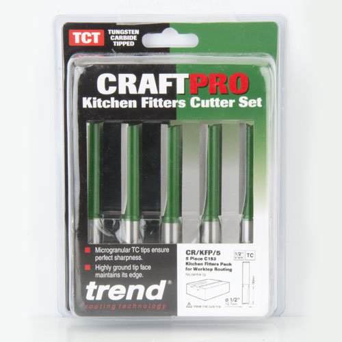 Trend CR/KFP/5 5pc Kitchen Fitters Router Cutter Pack for Worktop Jigs - 50mm Cut x 1/2 Shank