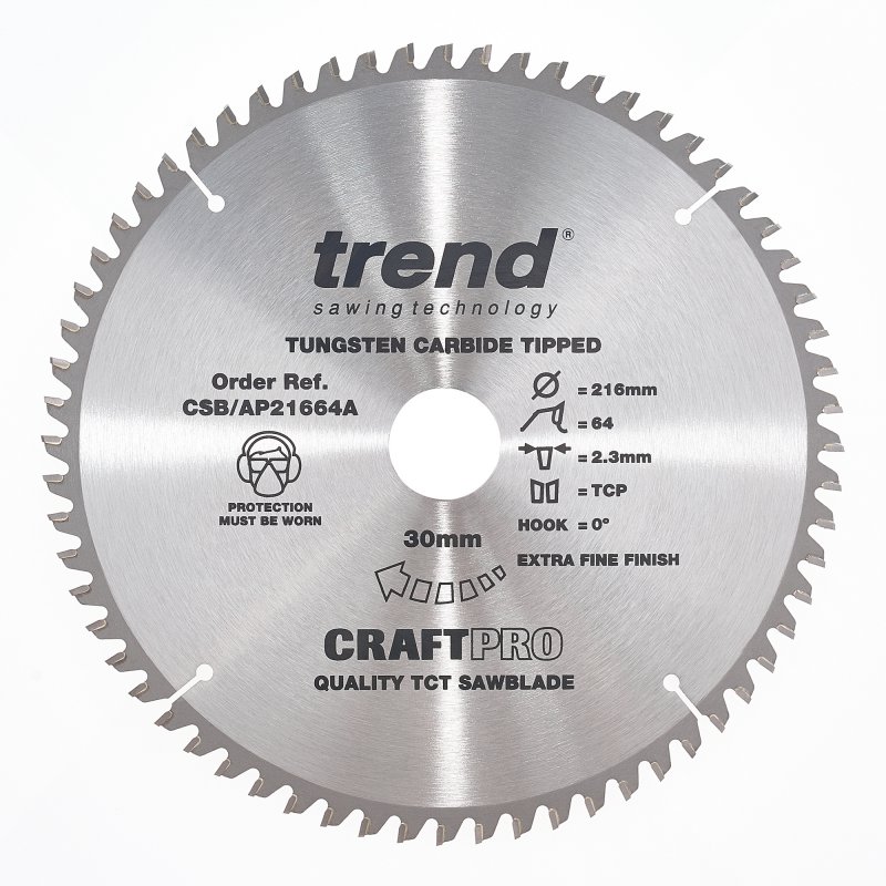 Trend CraftPro Aluminium / Plastic Saw Blade - 216mm dia x 2.3 kerf x 30 bore 64T