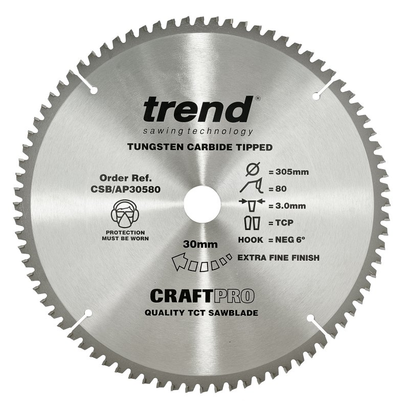 Trend CraftPro Aluminium / Plastic Saw Blade - 305mm dia x 3 kerf x 30 bore 80T