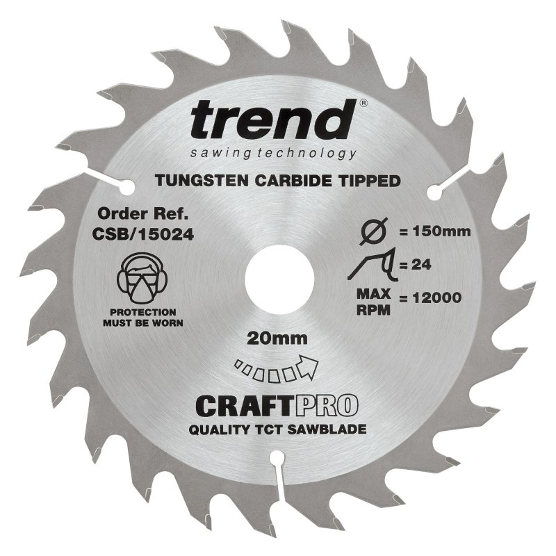 Trend Craft Pro saw blade - 150mm diameter, 20mm bore, 24 tooth, TCT, wood rip and cross cuts.