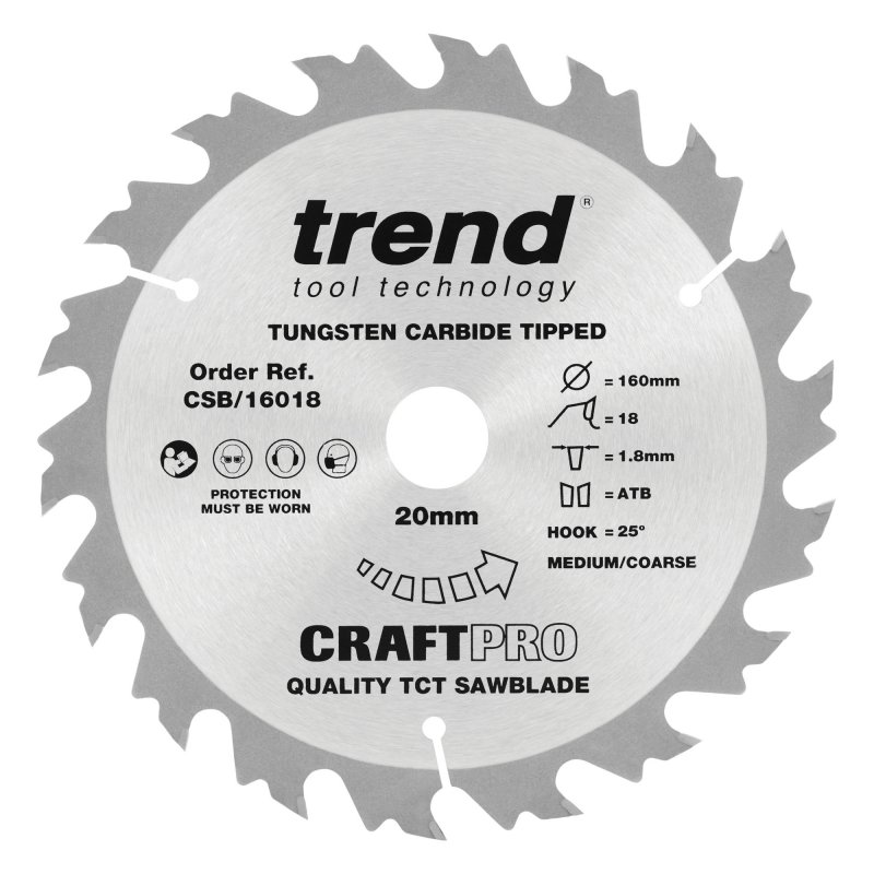 Trend CraftPro Combination Wood Saw Blade - 160mm dia x 1.8 kerf x 20 bore 18T