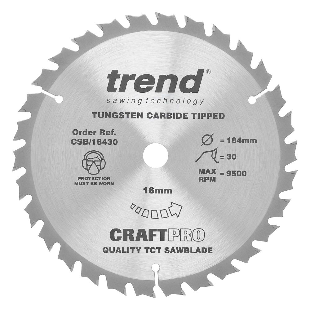 Trend CraftPro Combination Wood Saw Blade - 184mm dia x 2.6 kerf x 16 bore 30T
