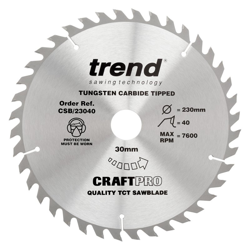 Trend Craft Pro saw blade - 230mm diameter, 30mm bore, 40 tooth, TCT, wood rip and cross cuts.