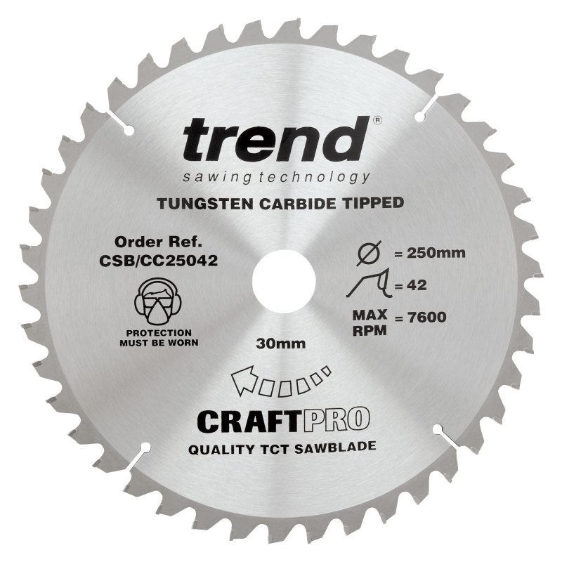 Trend Craft Pro saw blade - 250mm diameter, 30mm bore, 42 tooth, TCT, for mitre saws.