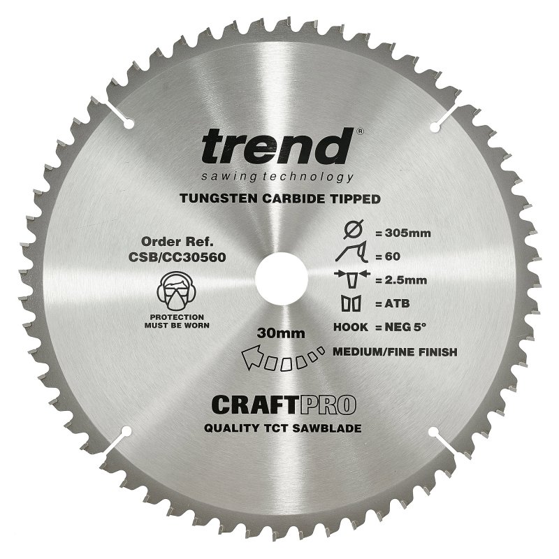 Trend CraftPro Crosscut Wood Mitre Saw Blade - 305mm dia x 2.44 kerf x 30 bore 60T
