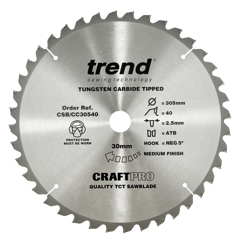 Trend CraftPro Crosscut Wood Mitre Saw Blade - 305mm dia x 2.5 kerf x 30 bore 40T