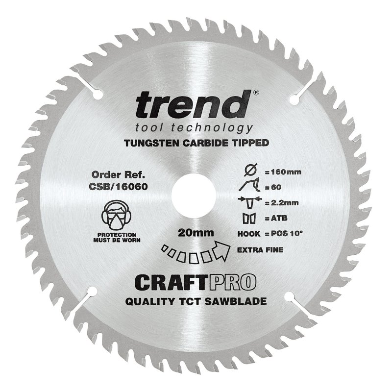Trend CraftPro Extra Fine Finish Wood Saw Blade - 160mm dia x 2.2 kerf x 20 bore 60T