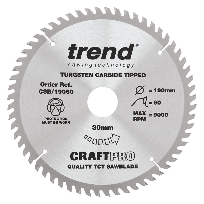 The perfect replacement blade for 190mm diameter mains powered circular saws. With 60 tooth ATB (Alternate Top Bevel) configuration ideal for finer crosscutting work with veneered boards.