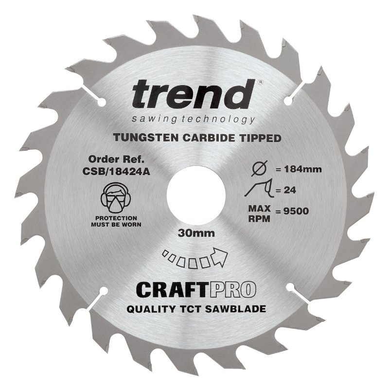 Trend Craft Pro saw blade - 184mm diameter, 30mm bore, 24 tooth, TCT, wood general purpose, medium/coarse finish.