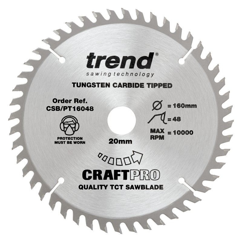 Trend Craft Pro 160mm diameter, 20mm bore, 48 tooth, fine finish cut saw blade for plunge saws.