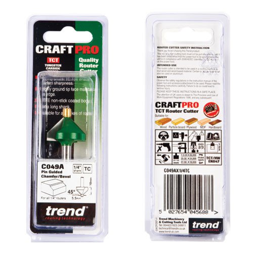 Trend CraftPro Pin Guided Chamfer Bevel Router Cutters