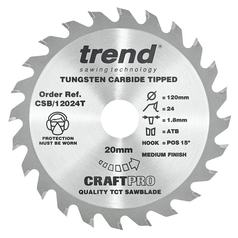 Craft Pro saw blade 120mm x 24 teeth x 20mm bore, thin kerf.