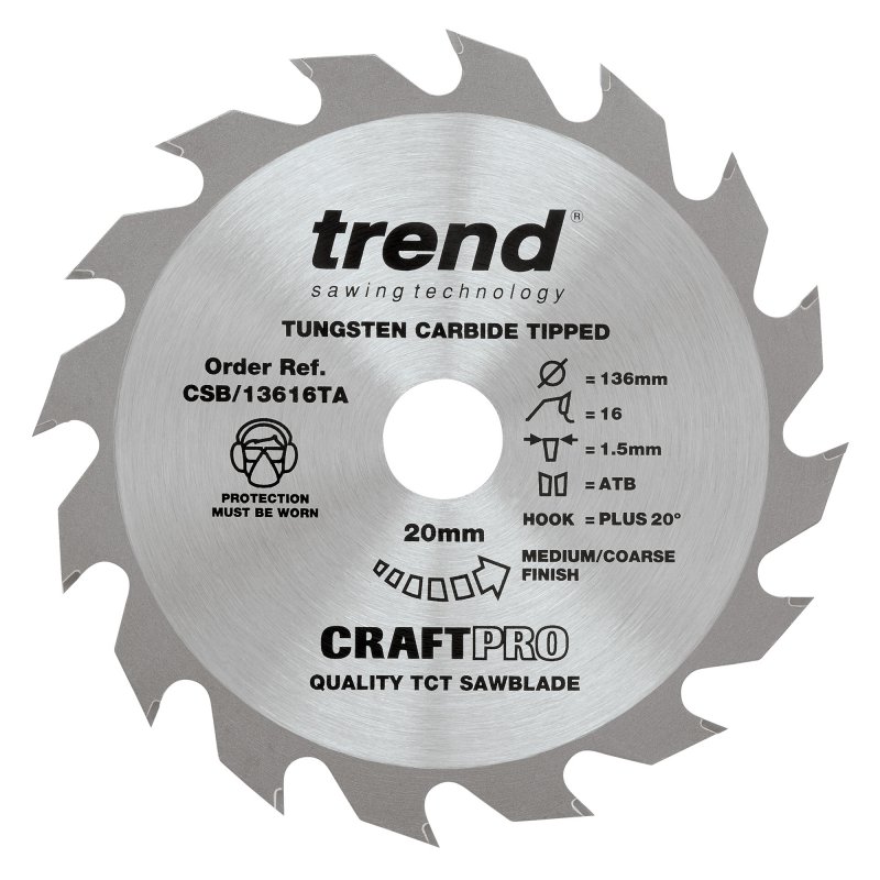 Trend Craft Pro saw blade - 136mm diameter, 20mm bore, 16 tooth, TCT, for cordless saws.