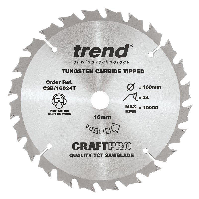 Craft Pro saw blade 160mm x 24 teeth x 16mm bore, thin kerf.