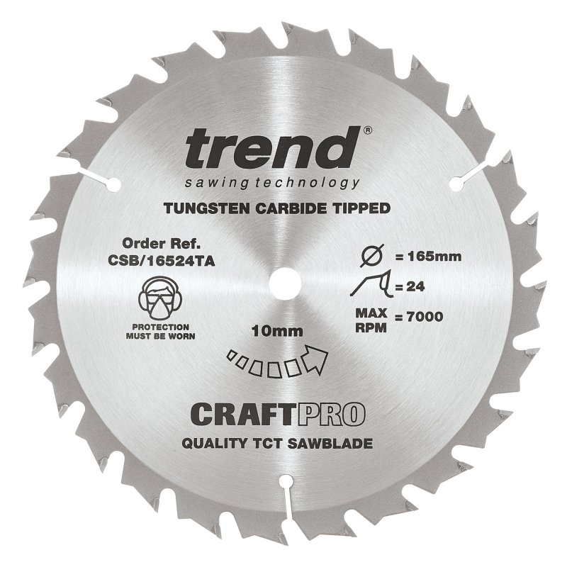 Trend CraftPro Thin Kerf Cordless Saw Blade - 165mm dia x 1.5 kerf x 10 bore 24T