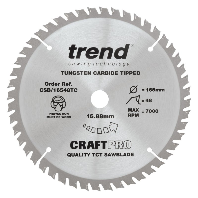 Trend Craft Pro saw blade - 165mm diameter 5/8in bore 48tooth TCT for cordless saws