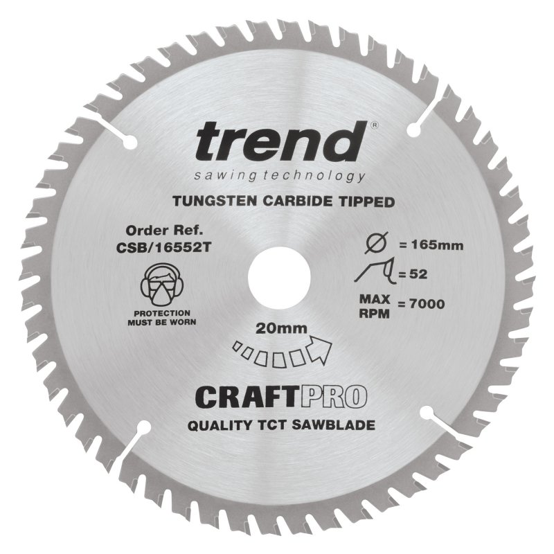 Trend Craft Pro Saw Blade, Fine Finish. 165mm x 52 Teeth x 20mm Bore. Thin kerf saw blade for Circular Saw.