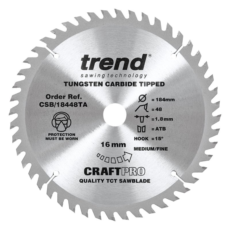 Craft Pro saw blade 184mm x 48 teeth x 16mm bore, thin kerf.