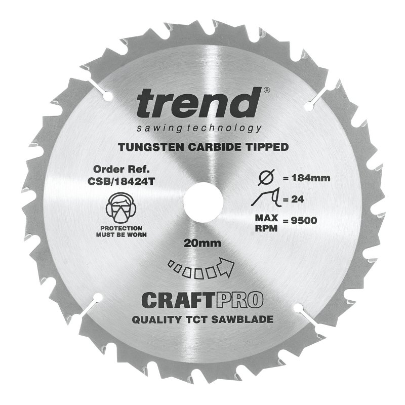 Craft Pro saw blade 184mm x 24 teeth x 20mm bore, thin kerf.