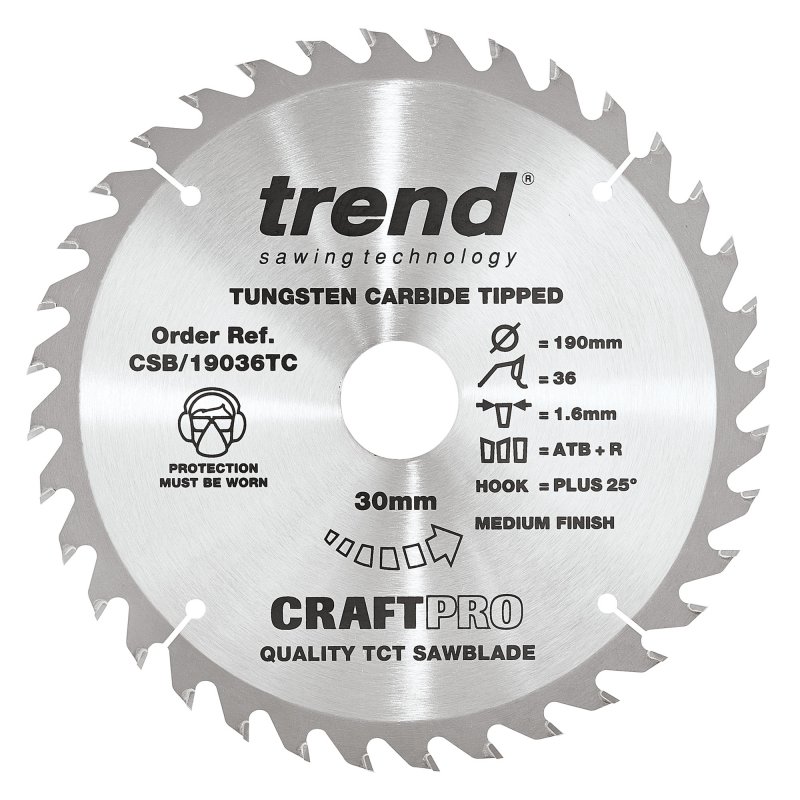 Trend CraftPro Thin Kerf Cordless Saw Blade - 190mm dia x 1.6 kerf x 30 bore 36T
